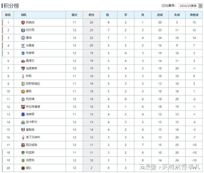昨晚今晨,英超联赛第12轮激战多场,利物浦主场0-3输给诺丁汉森林,遭到联赛2连败,跌至积分榜下半区;切尔西客场2-0击败伯恩利,升至积分榜第2位,内托和恩佐分别破门;曼城客场1-2输给纽卡斯尔,跌至积分榜第3位,巴恩斯梅开二度;水晶宫客场2-0击败狼队,升至积分榜第4位。